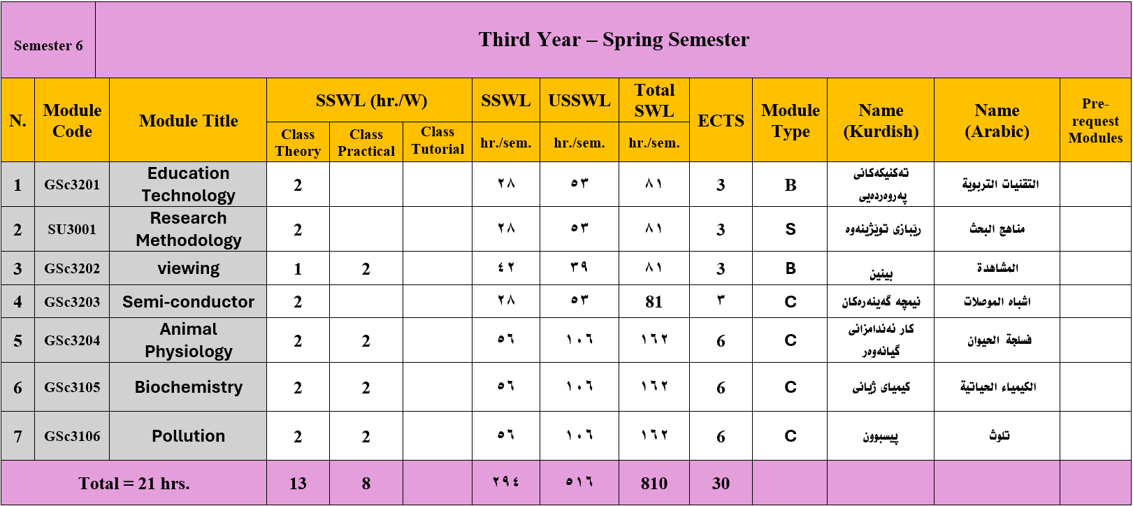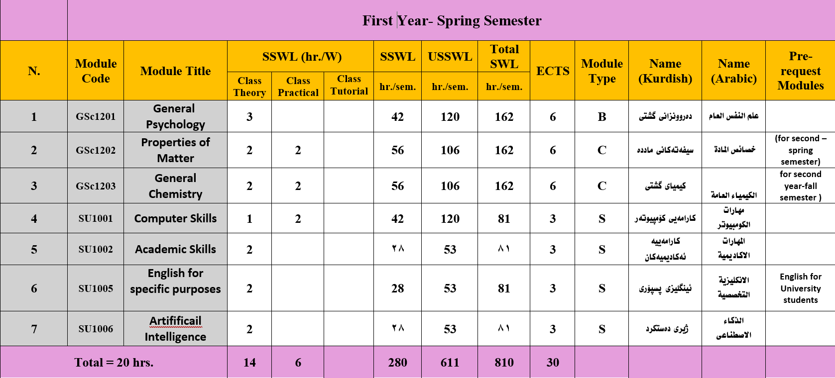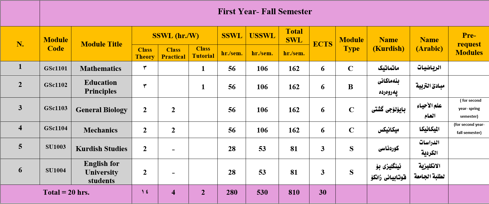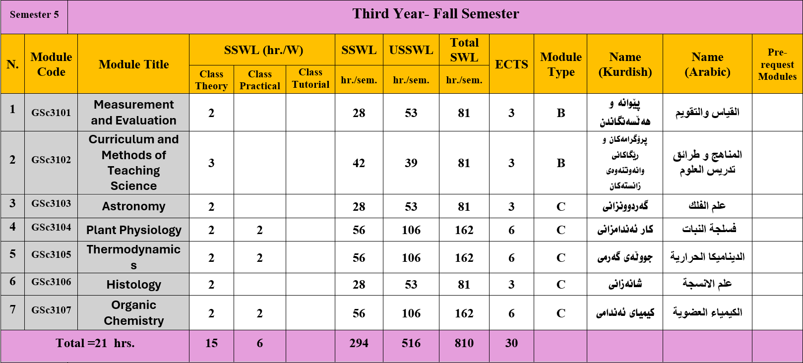 Graduates from the Department of General Sciences at Salahaddin University-Erbil will achieve the following learning outcomes upon successful completion of the General Sciences programs: