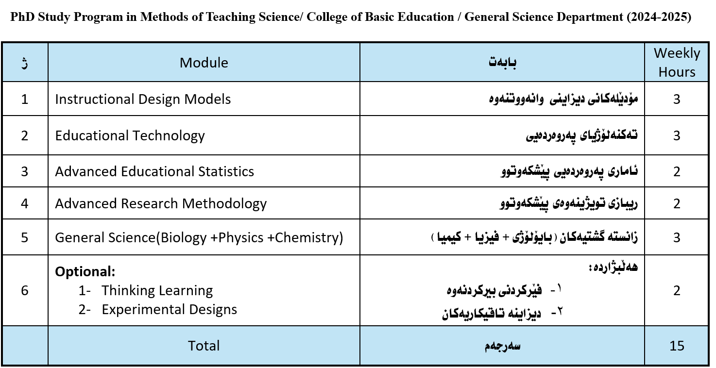 - Doctor of Philosophy (Ph.D.): in one of the following specializations:) Methods of Teaching Science)